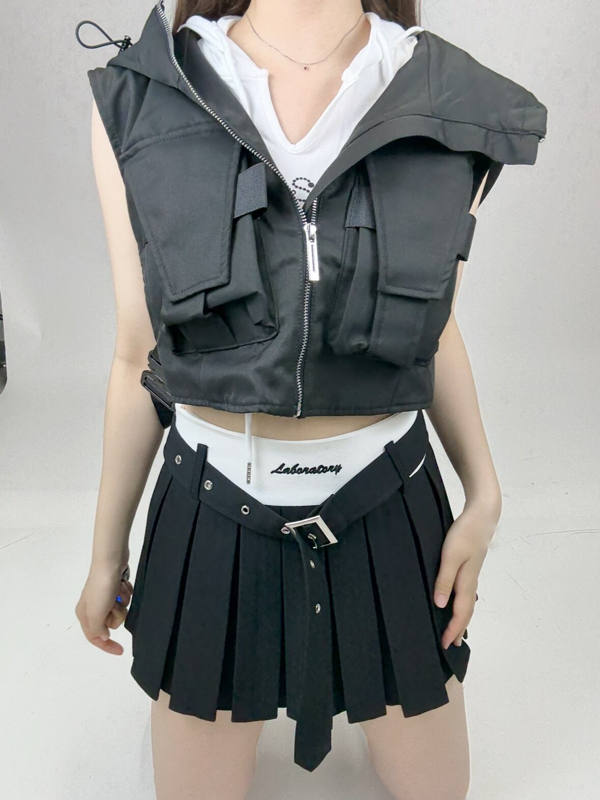 ウエストにデザインがあるので、クロップド丈・ミニ丈のトップスと相性抜群。
