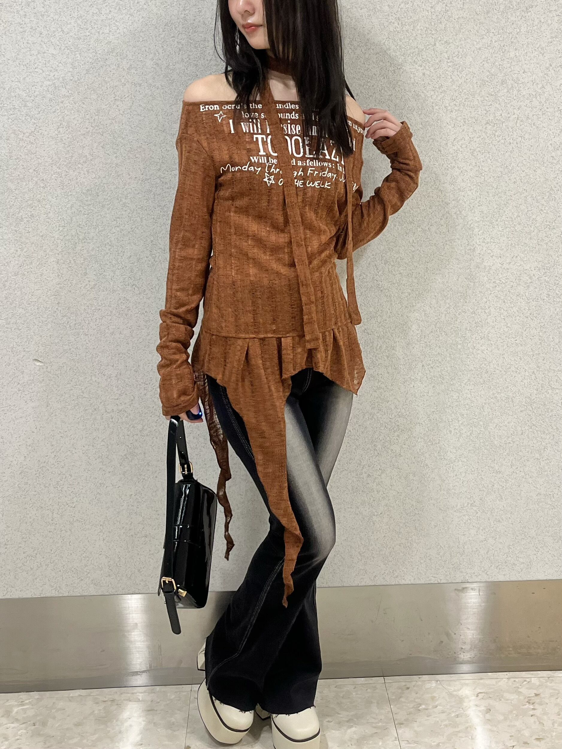 シャツやタートルネックのカットソーをインナーにレイヤードしても◎