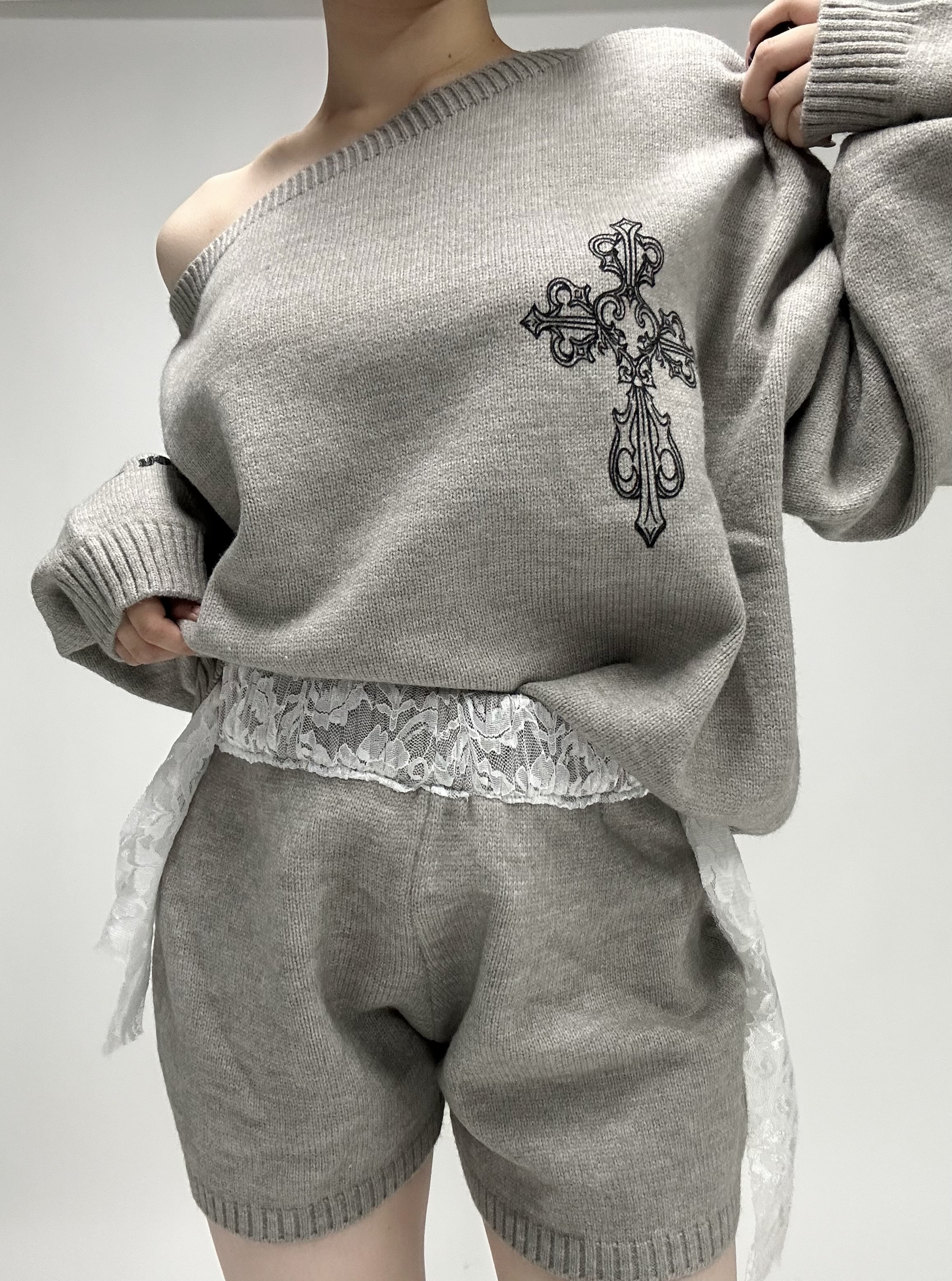 ボトムについているレースポイントで女性らしさも兼ね備えたSETUPです。