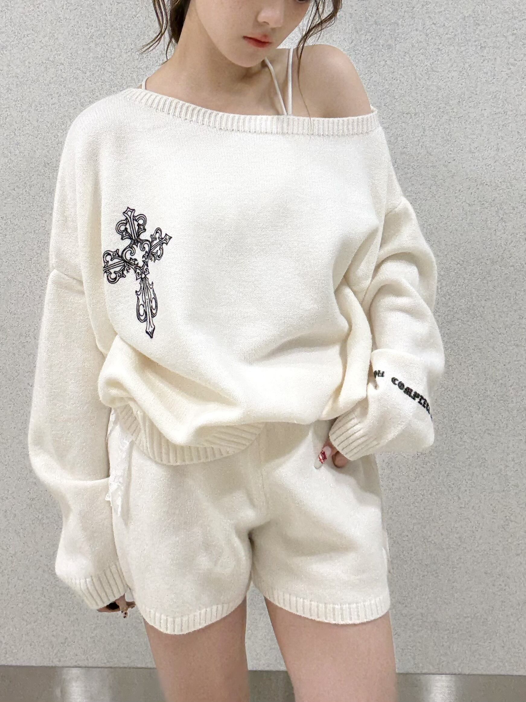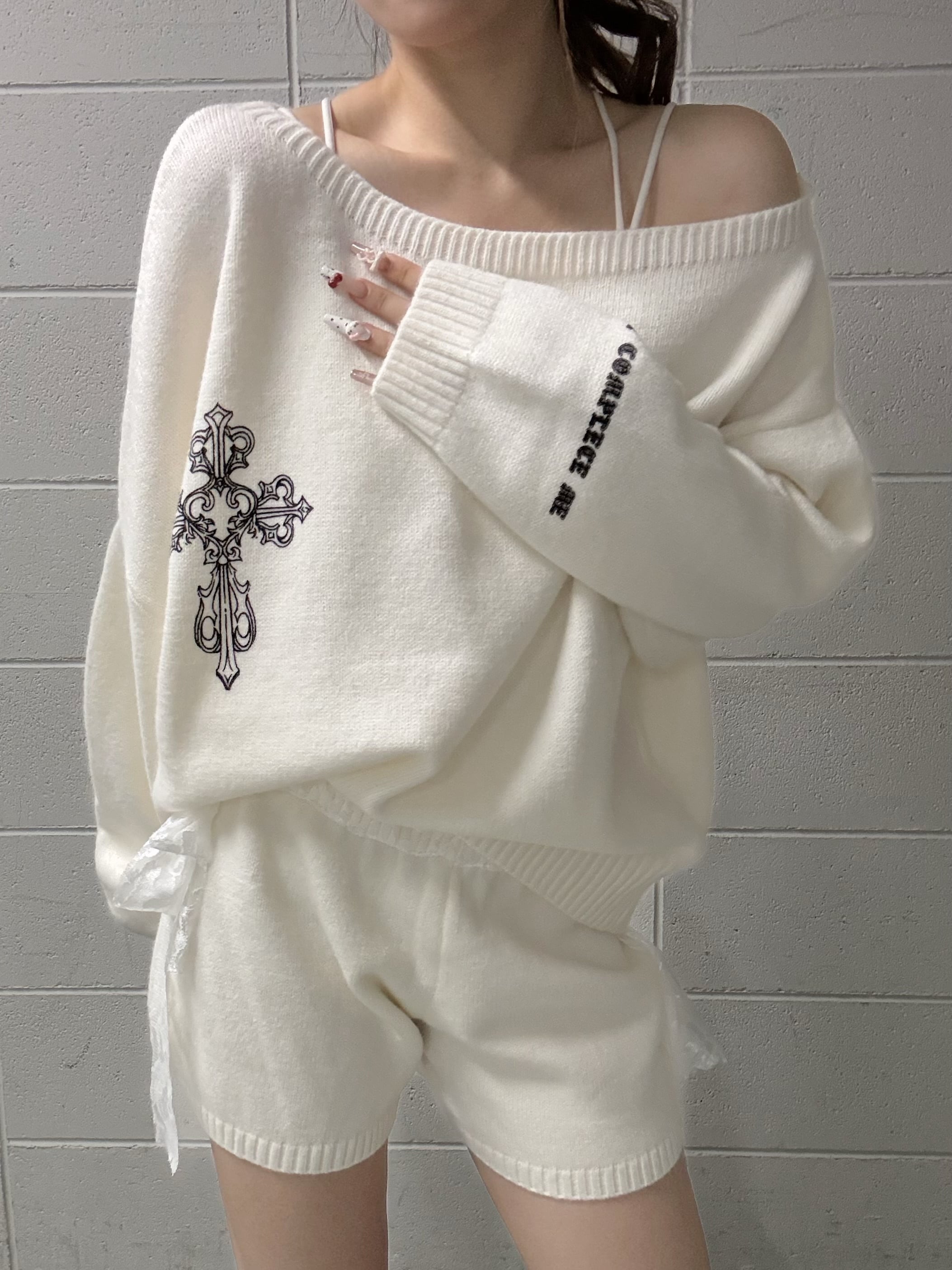 オフショルダーのトップスは肩のラインを美しく見せ、抜け感のあるルックを演出。