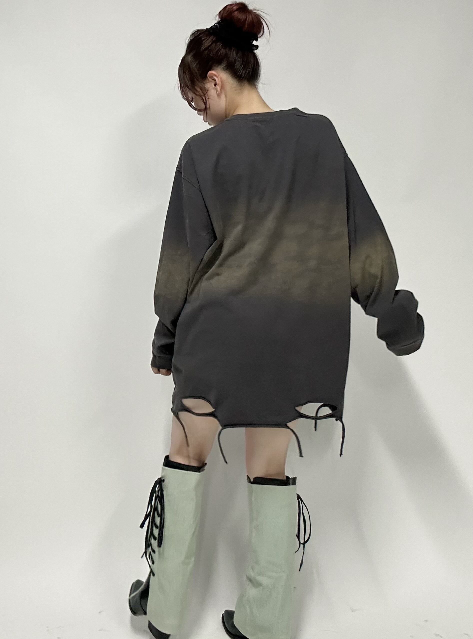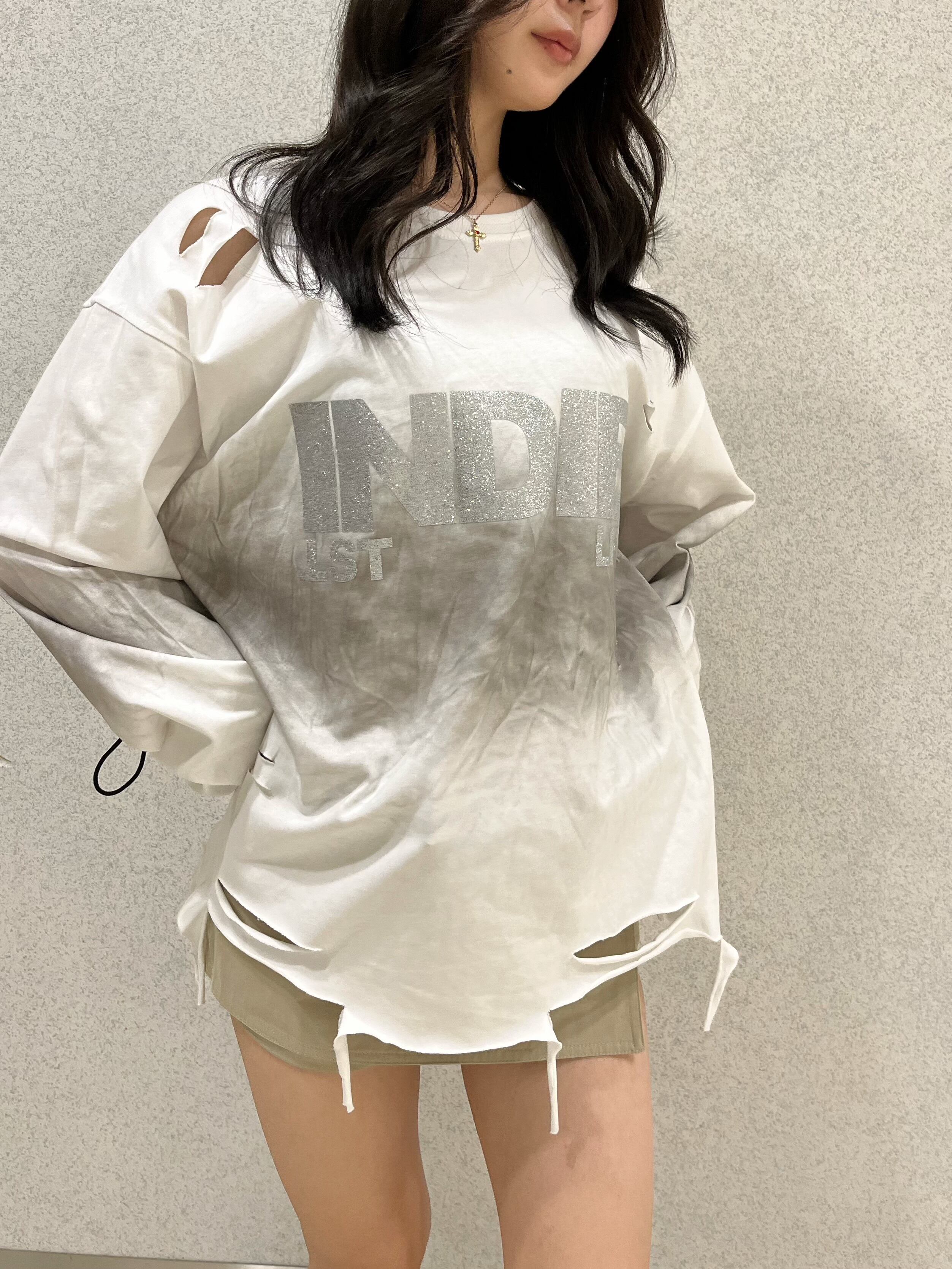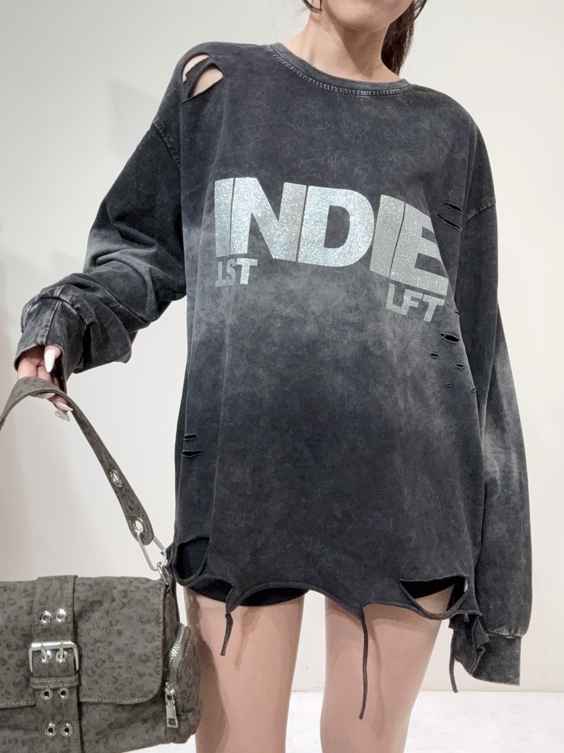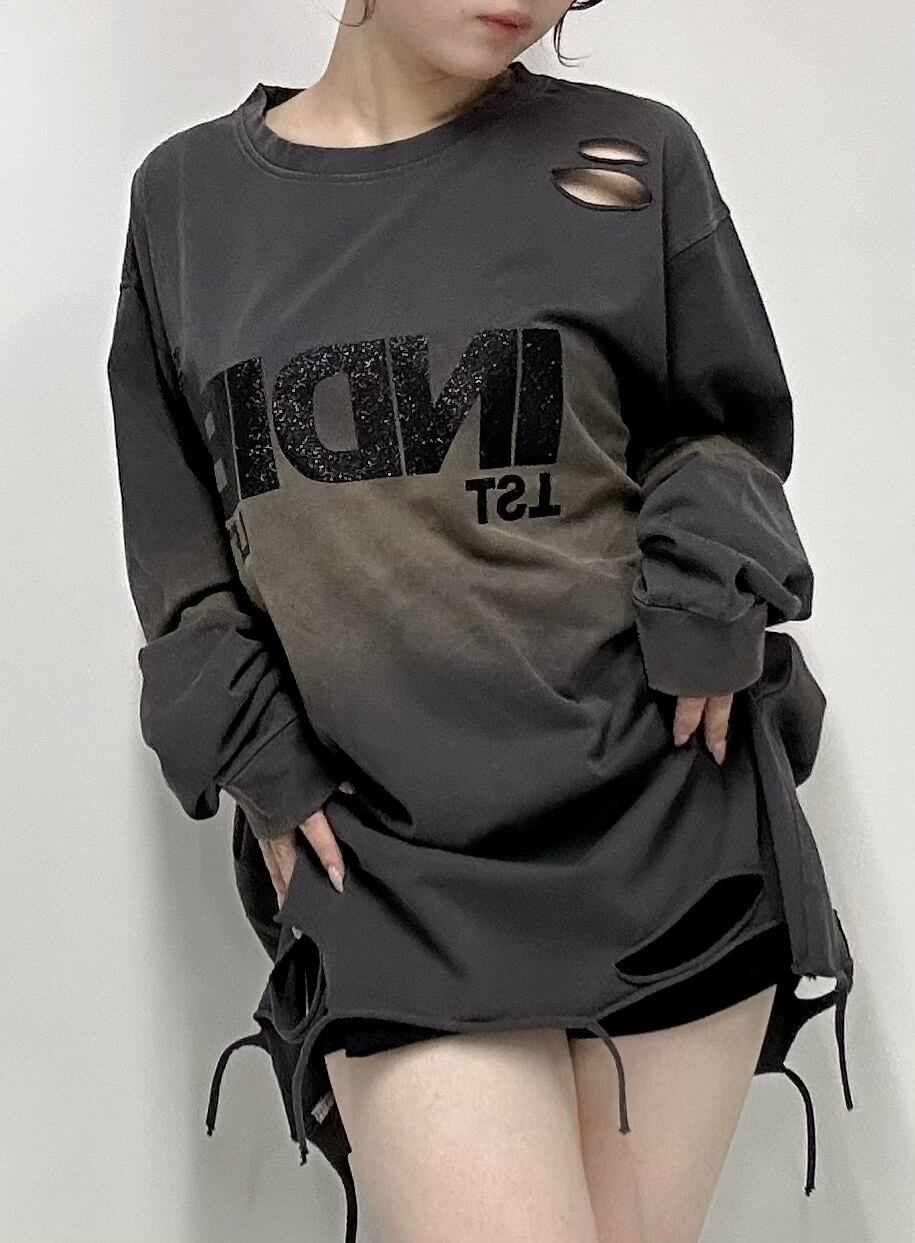 ヴィンテージ感漂うプリントが特徴で、ロックTのような古着感のある仕上がり。