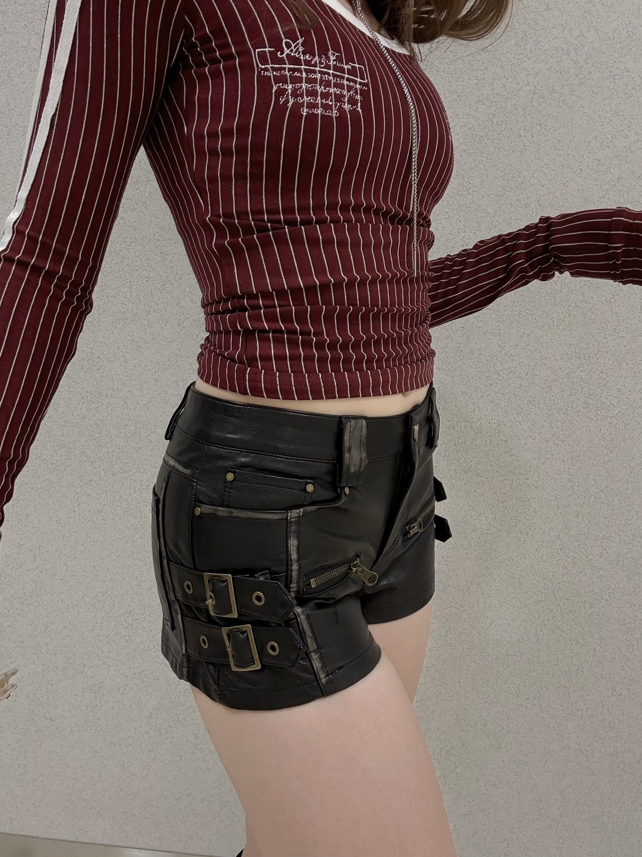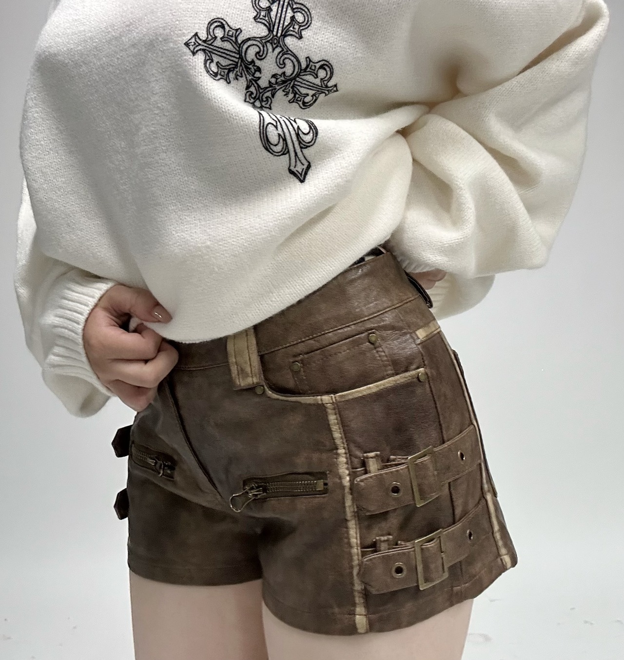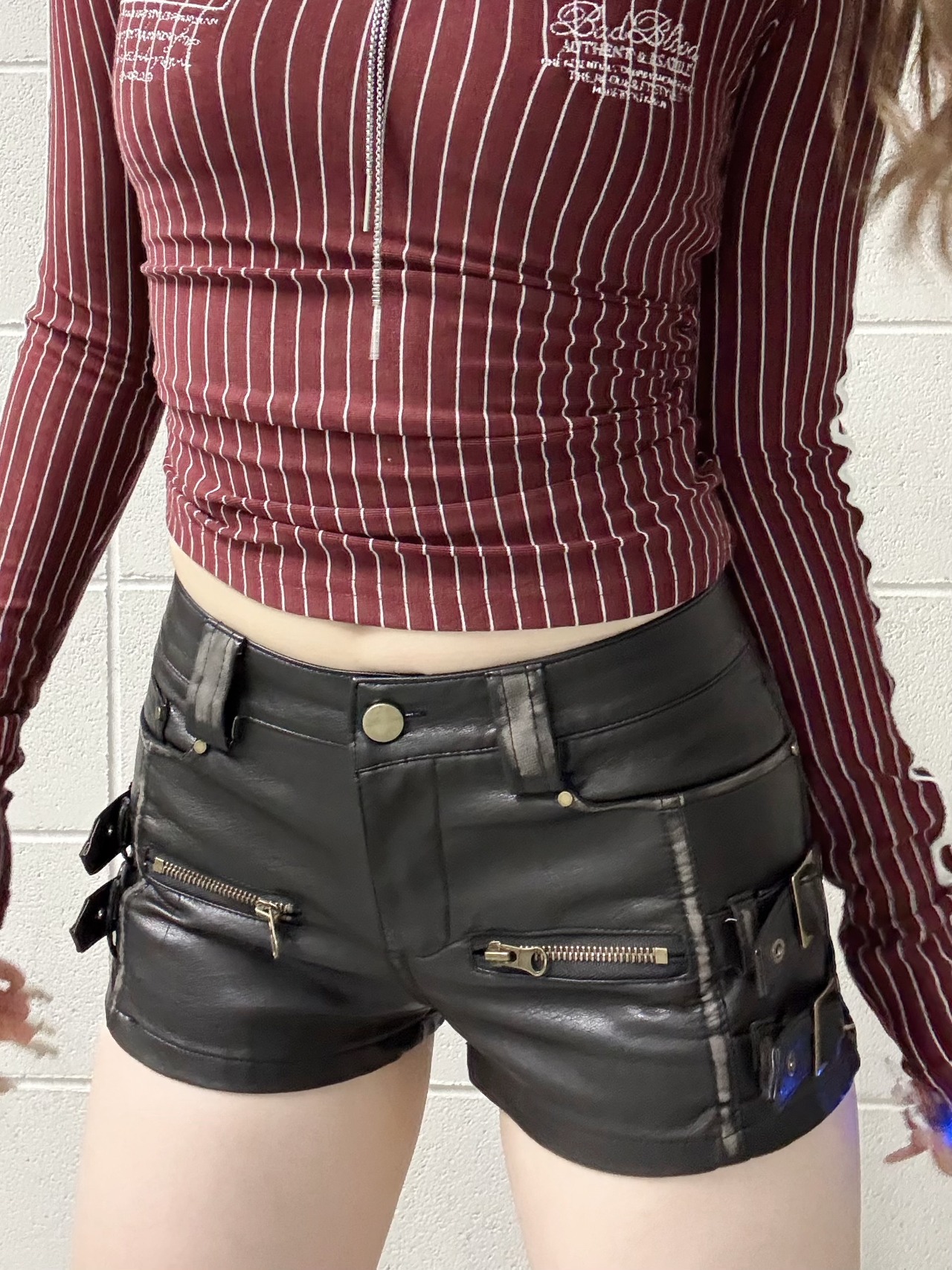 side belt leather short PT