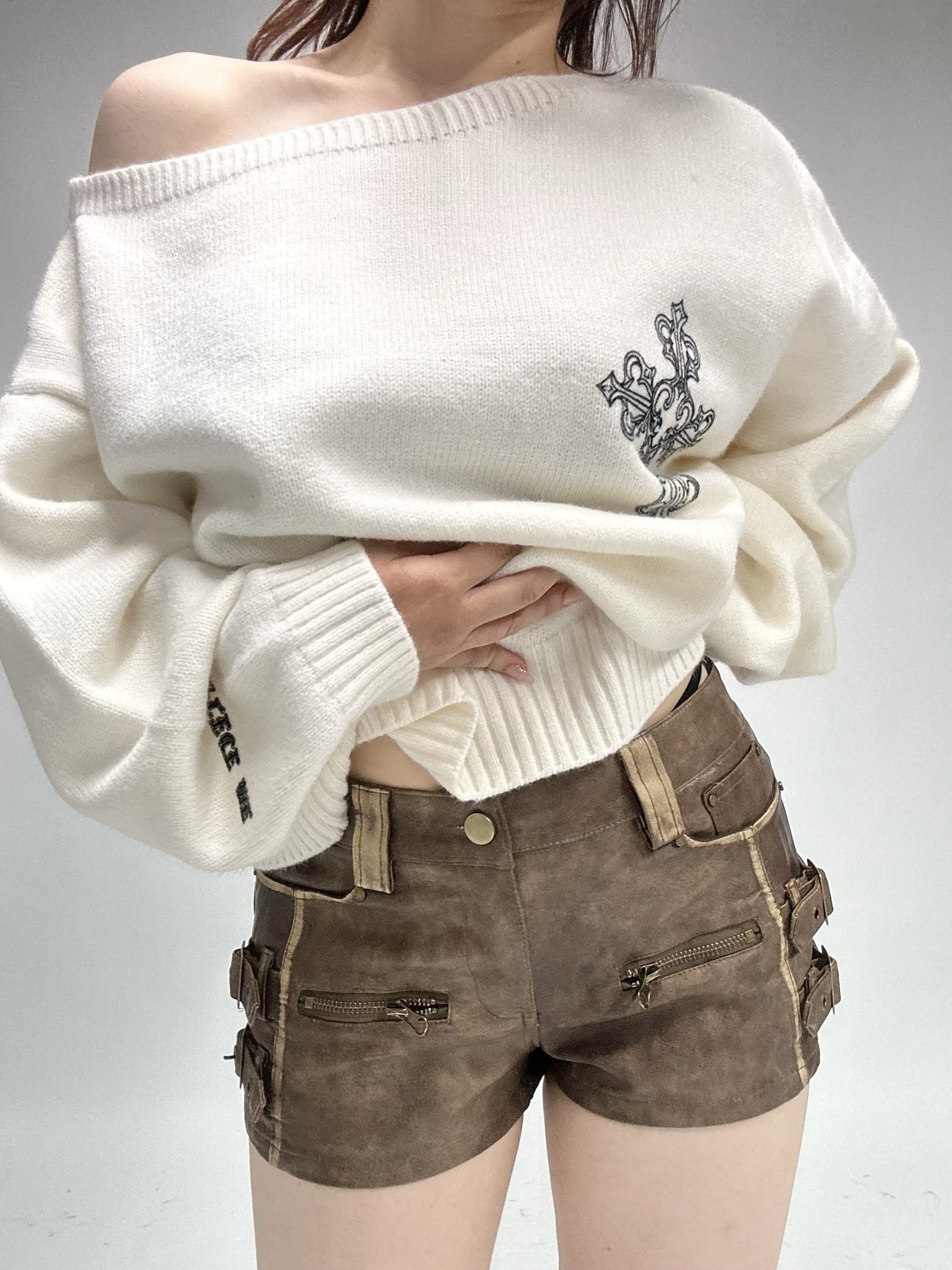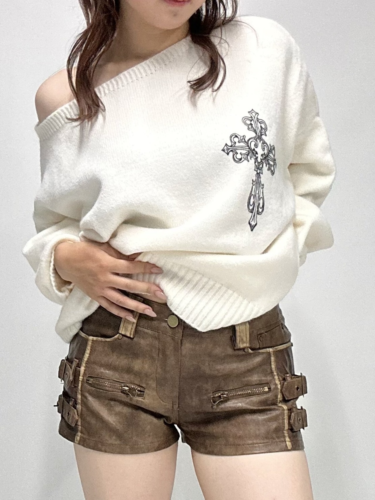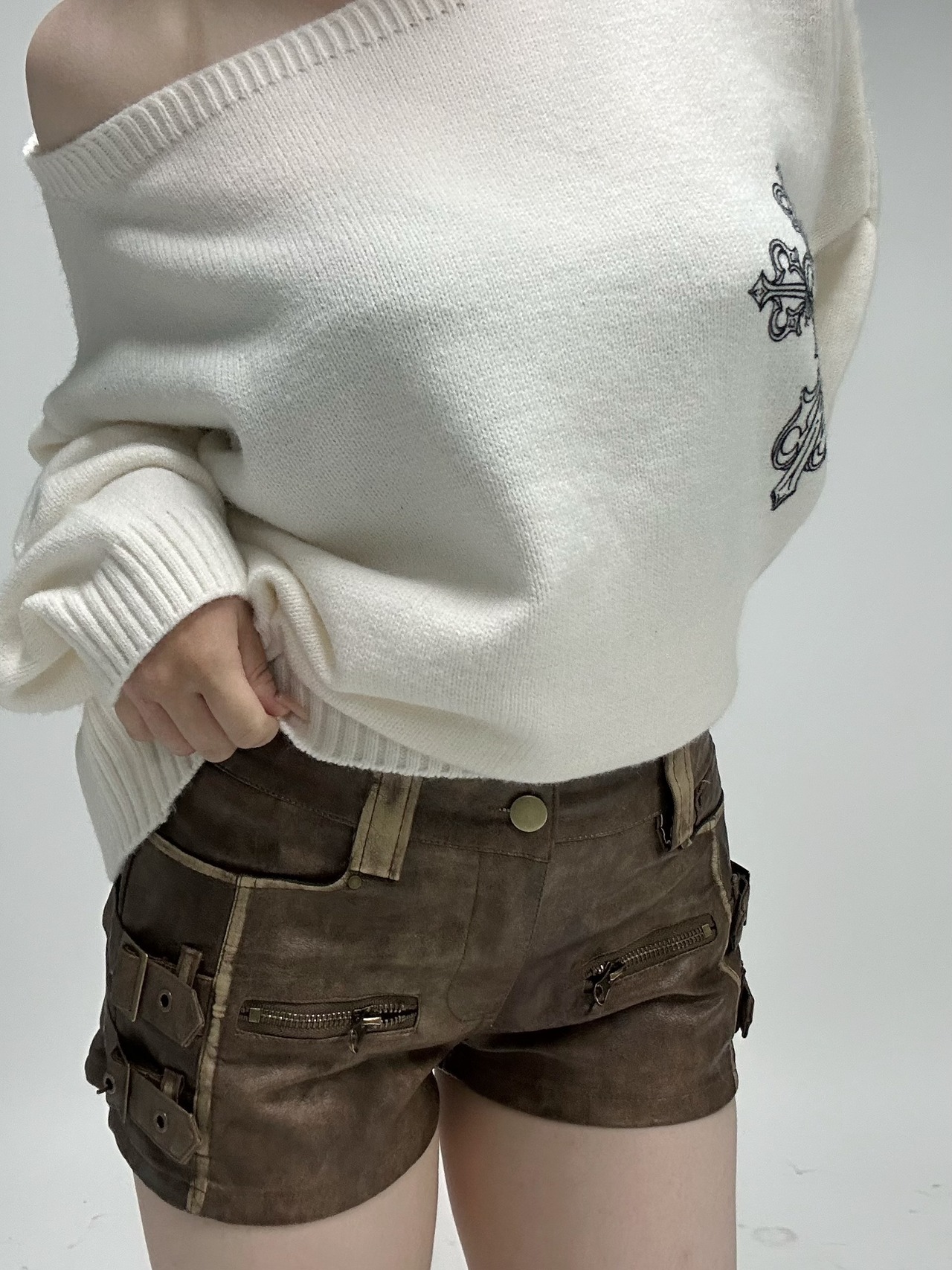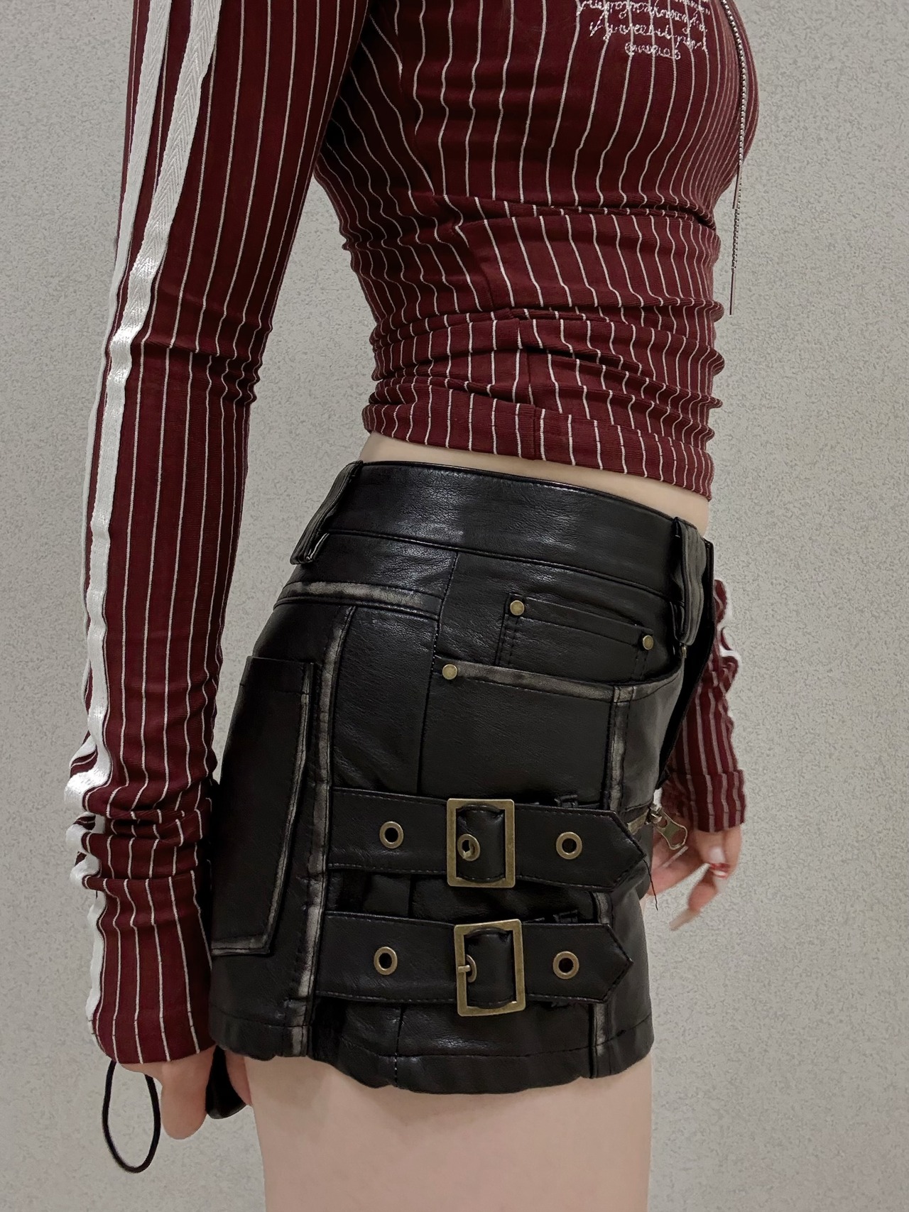 side belt leather short PT