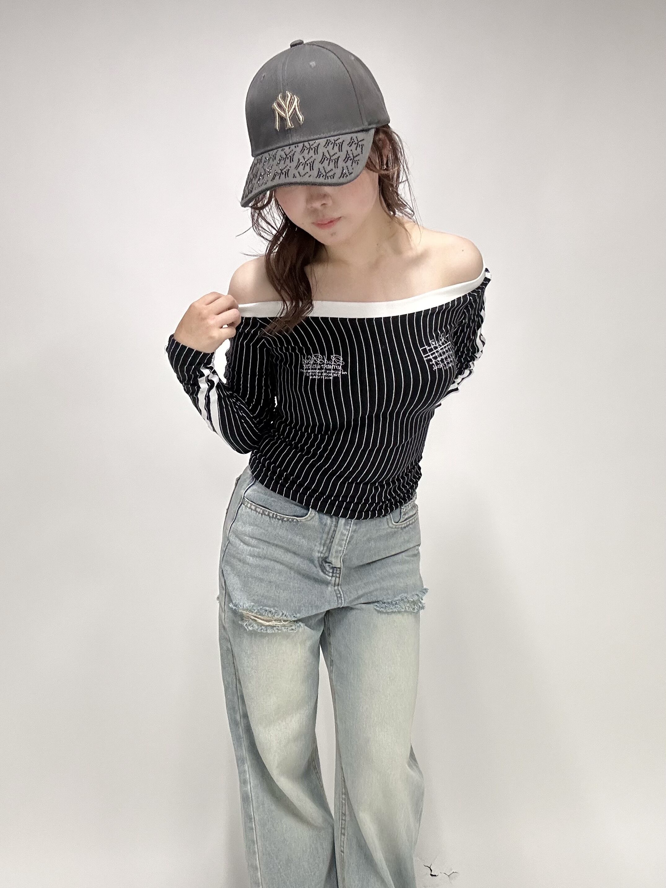 エレガントさとカジュアルな雰囲気を兼ね備えたone shoulder pigment tops。オフショルダーストライプデザインで、女性らしさを存分に引き立てる1着です。軽やかな素材感で、デイリーから特別な場面まで幅広くスタイリングできるのが魅力です。シンプルなボトムスに合わせるだけで、上品さが引き立ち、コーディネートの幅が広がります。