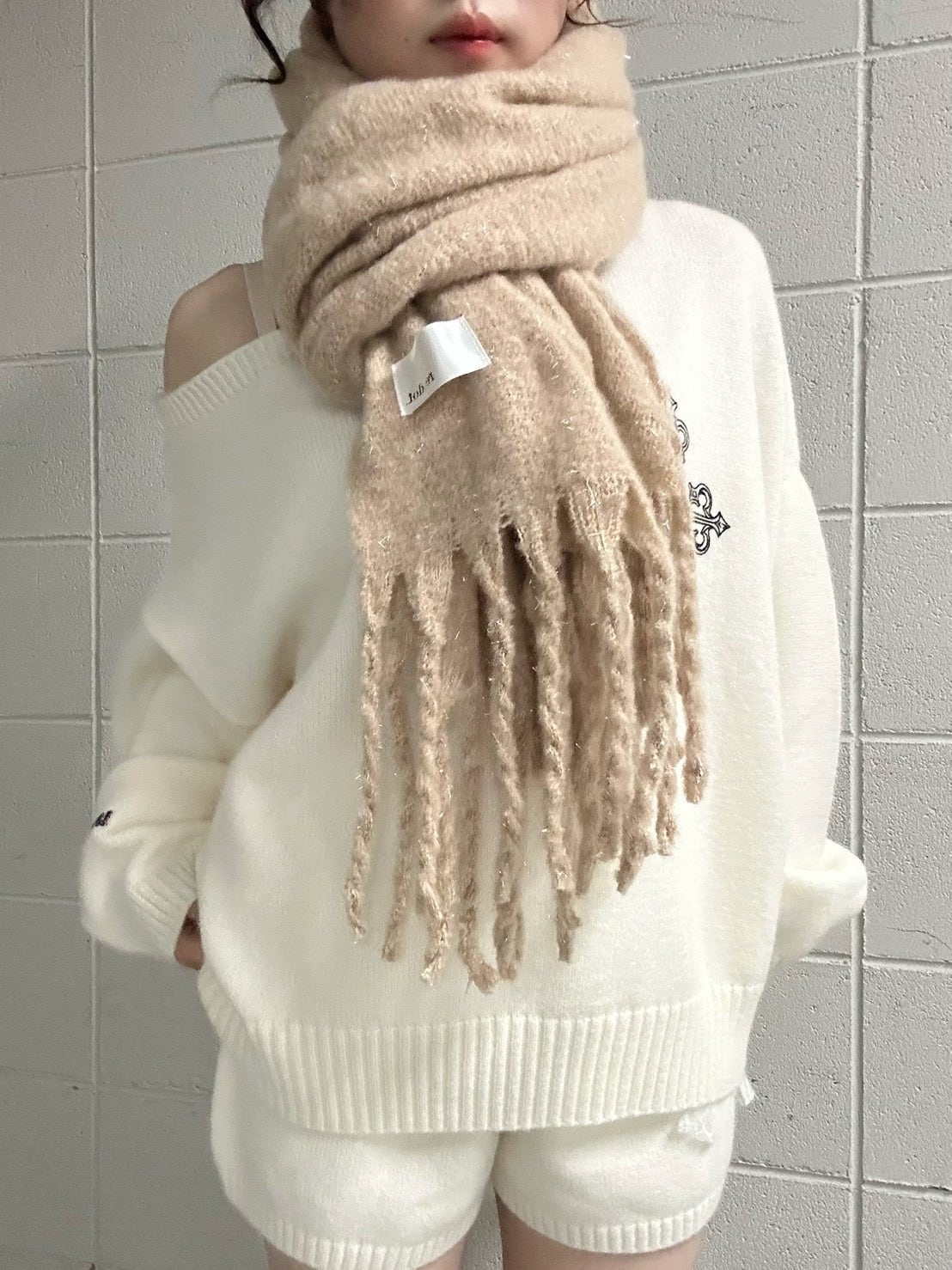 lame knit mufflerは、華やかなラメ感と新しいデザインが魅力のマフラーです。