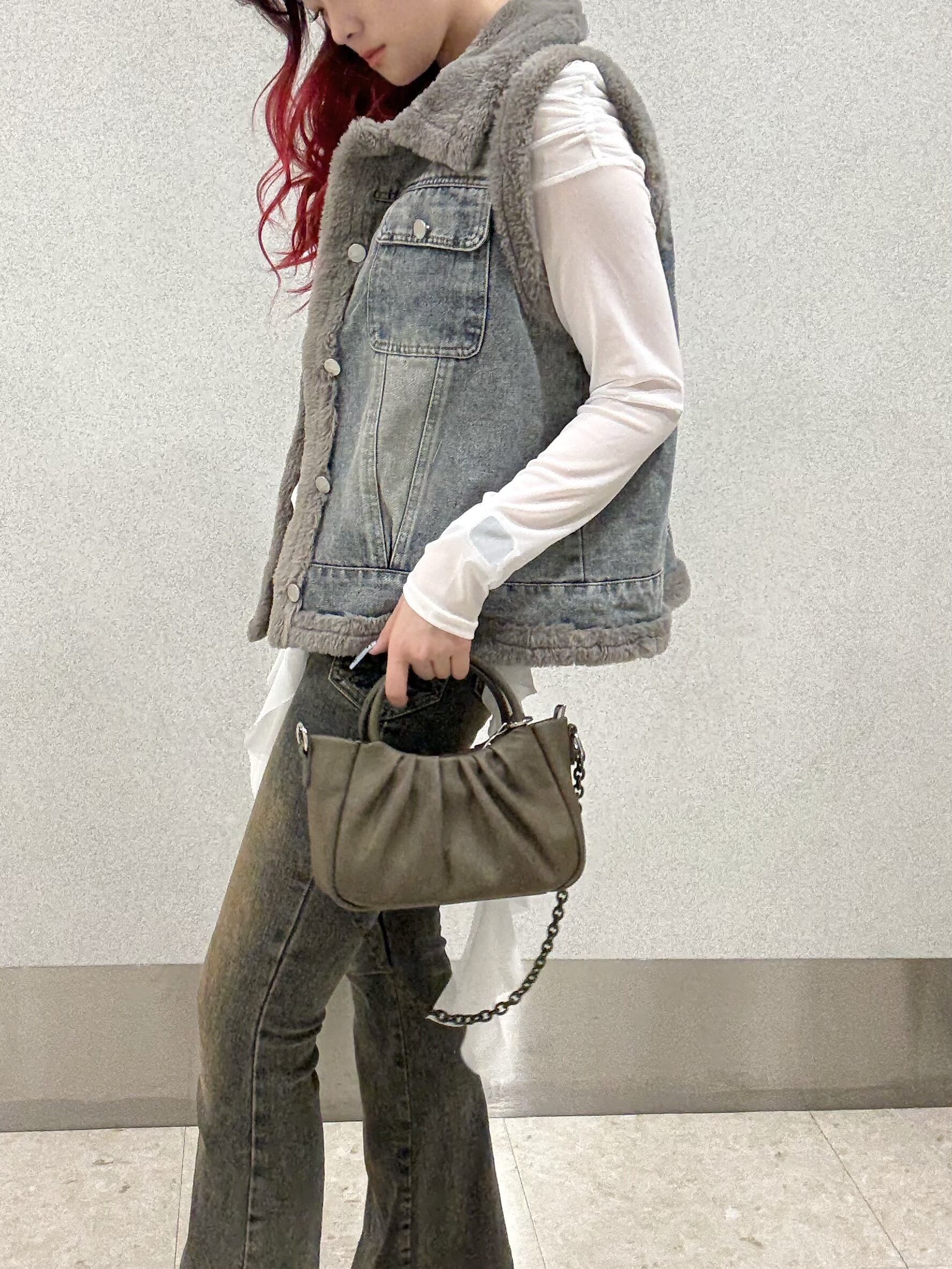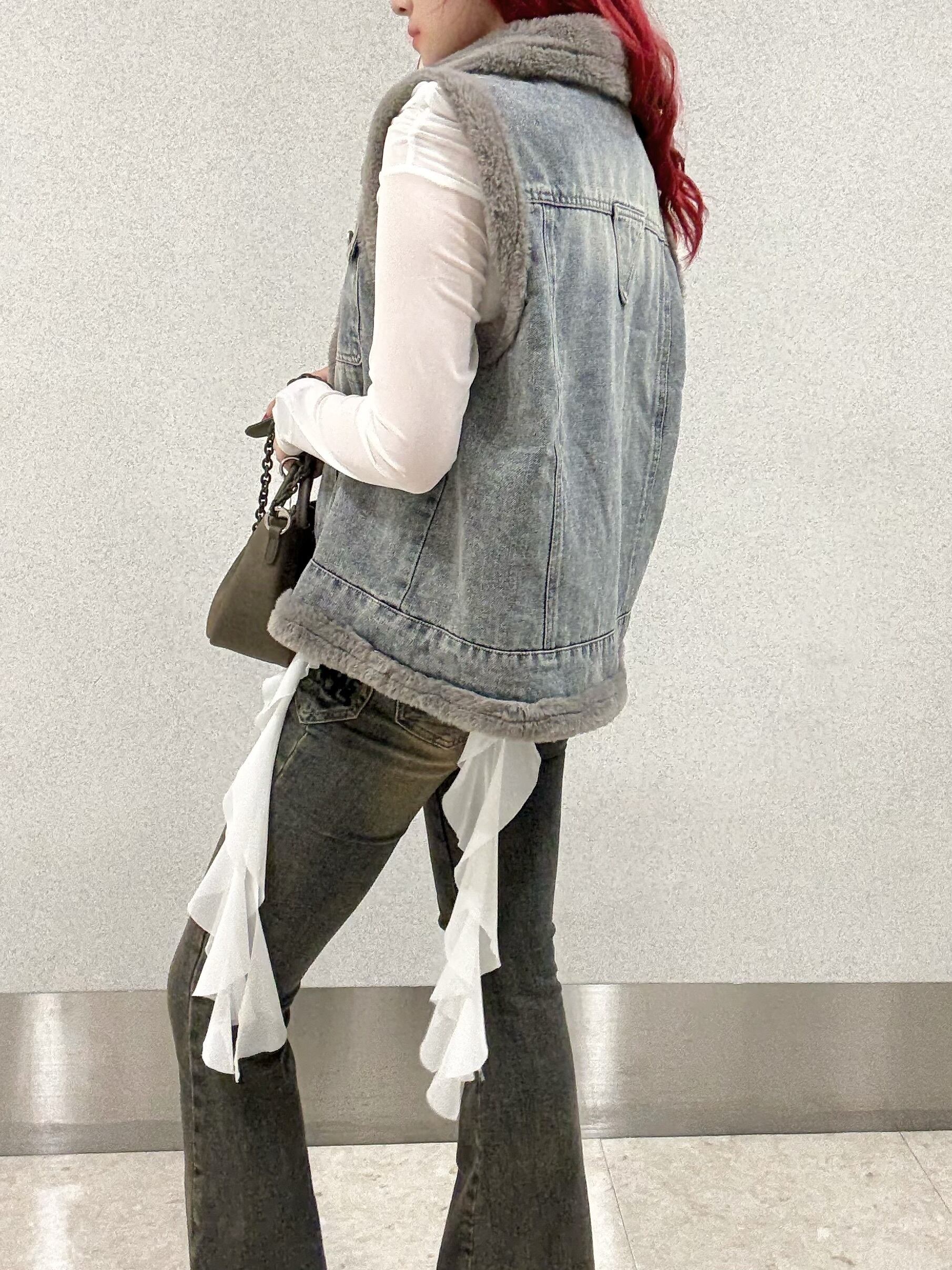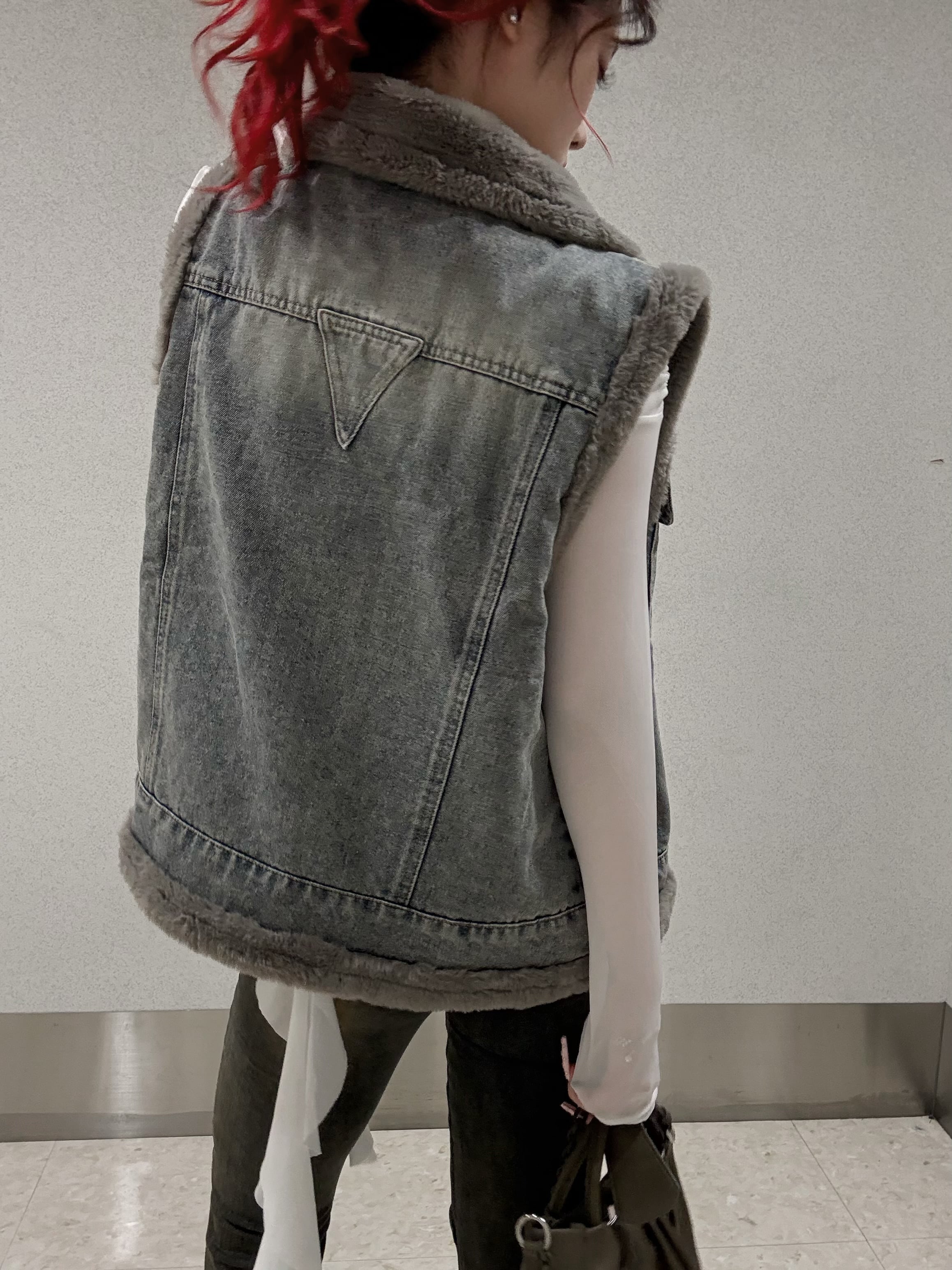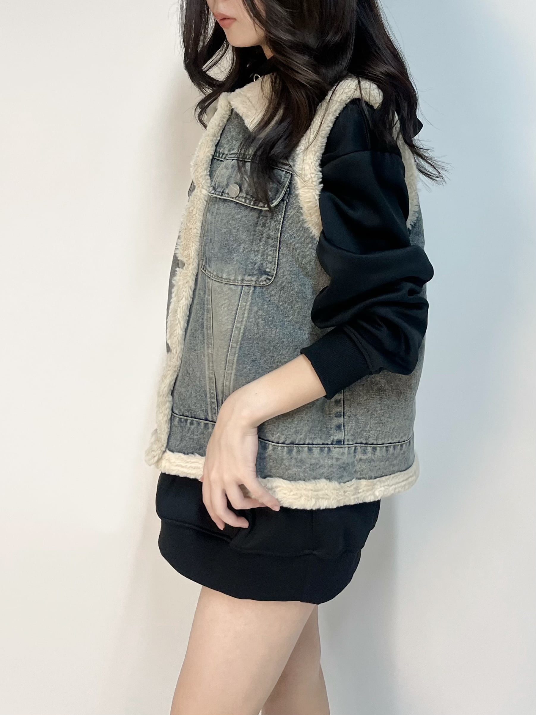 denim boa vestは、デニムとボアのコンビネーションが魅力的な一着です。トレンド感あふれるデザインで、カジュアルなスタイルを引き立てつつ、温かさも兼ね備えています!これ一枚で冬のおしゃれを楽しむことができる、頼もしいアイテムです。