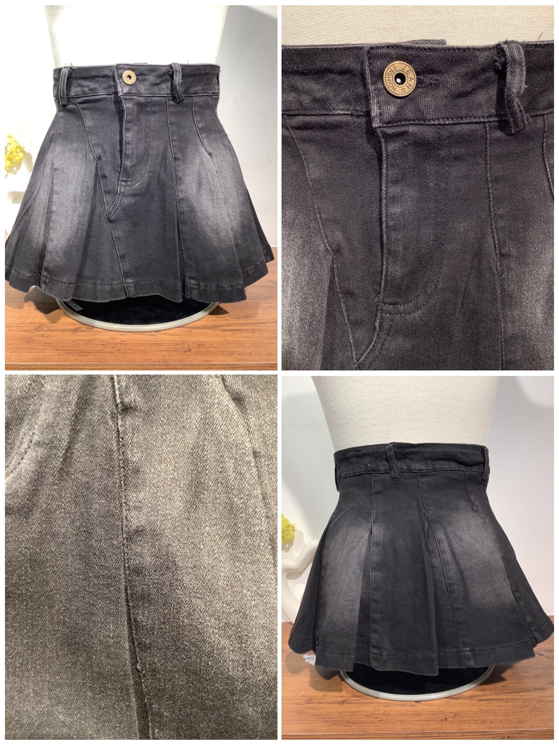 ストレッチの効いたデニム素材を使用した、おしゃれと快適さを両立させた一着です。プリーツデザインが可愛らしさを引き立て、デイリースタイルから特別なお出かけまで幅広く活躍するアイテムとなっています!これ一枚でおしゃれを楽しむことができる、頼もしい存在です。