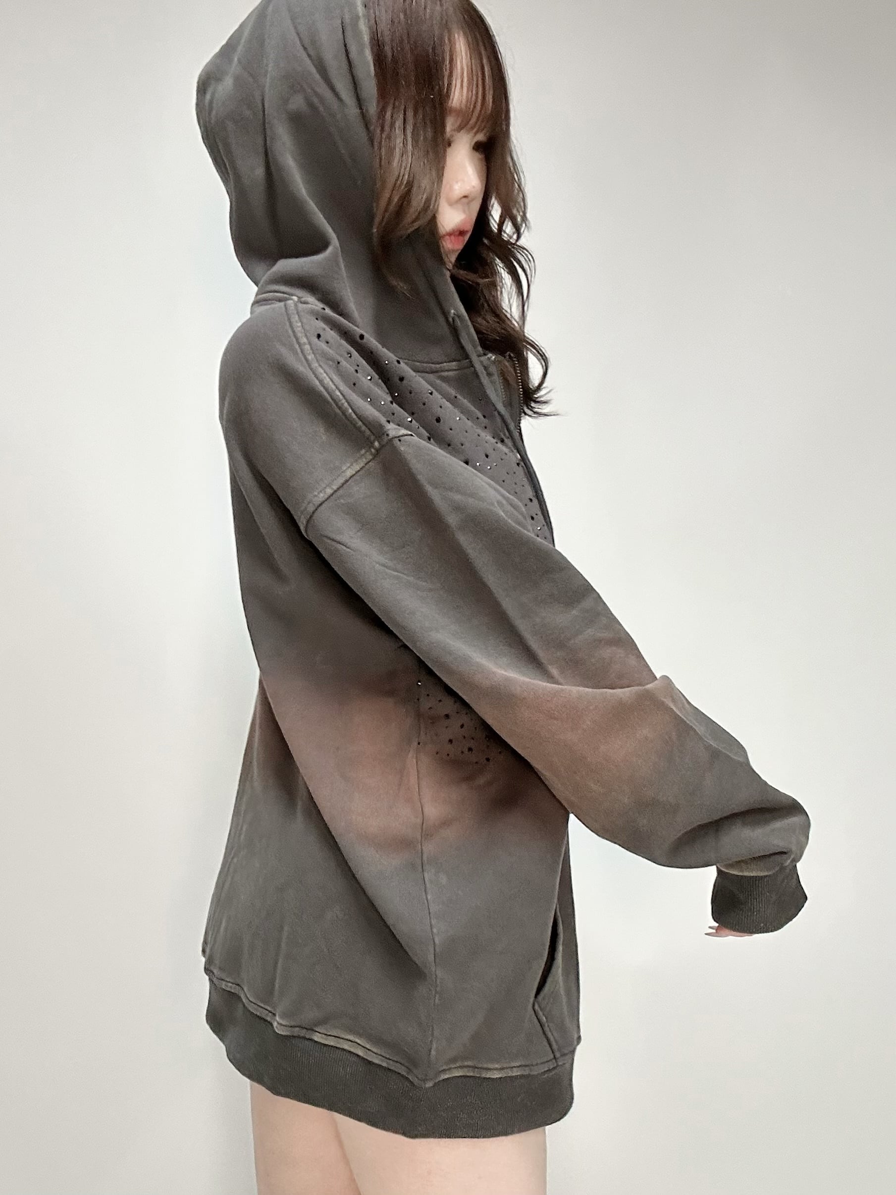 個性的なタイダイデザインとビジューモチーフが特徴的な一着です。ゆったりとしたシルエットが体型を気にせず快適に着用でき、デイリースタイルから特別な日のお出かけまで幅広く活躍するアイテムです!オシャレを楽しみながらも、リラックスした着心地を実感できる、頼もしい存在です。