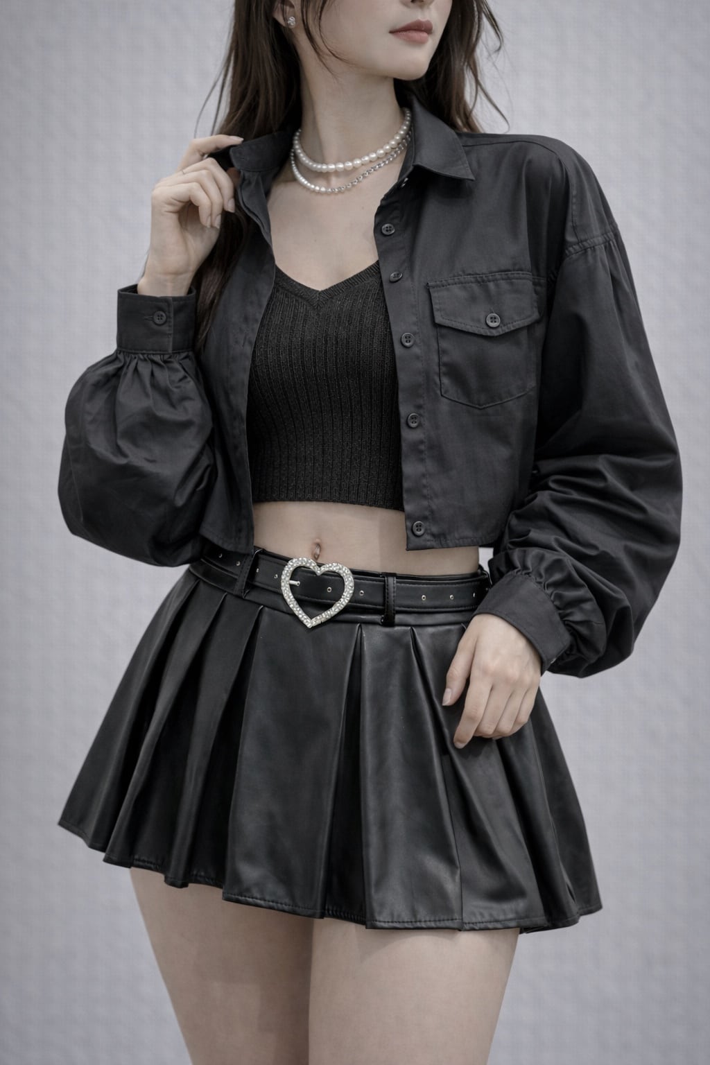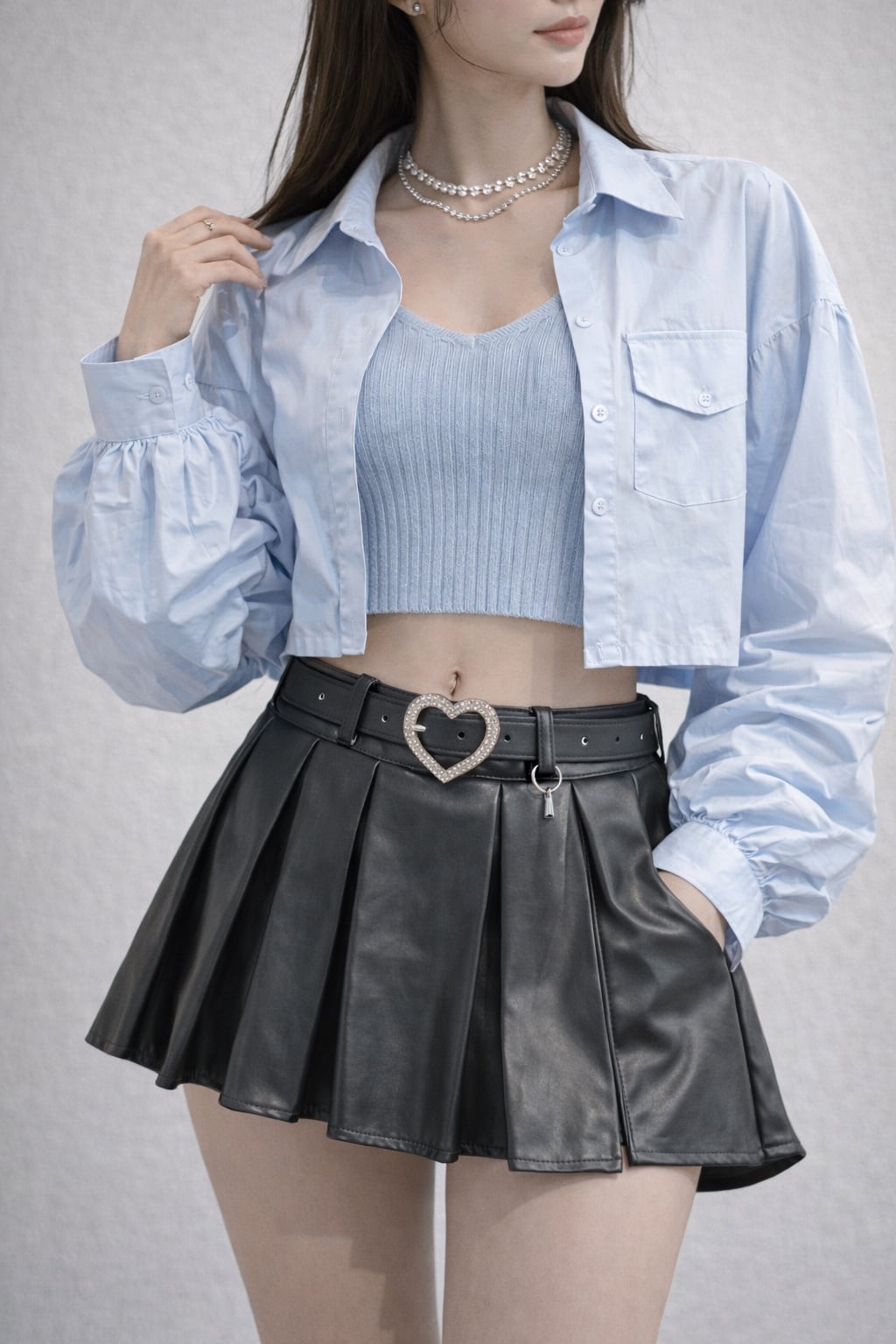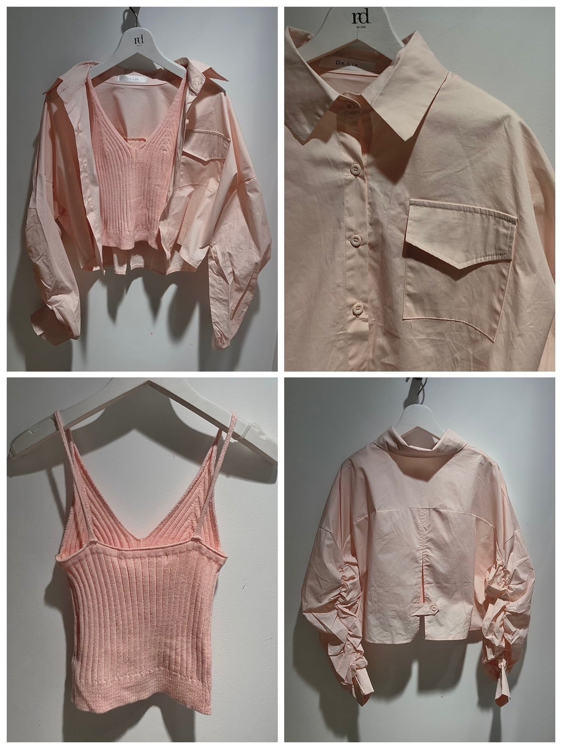 トレンド感たっぷりのショート丈シャツとリブキャミソールのセットアイテム。