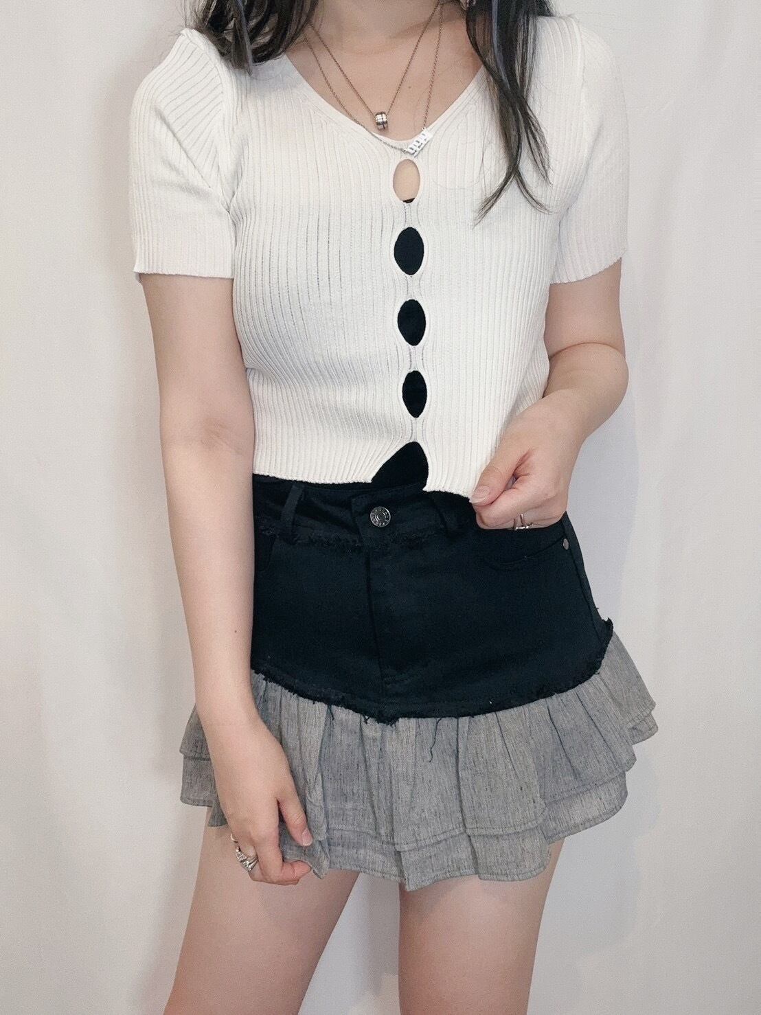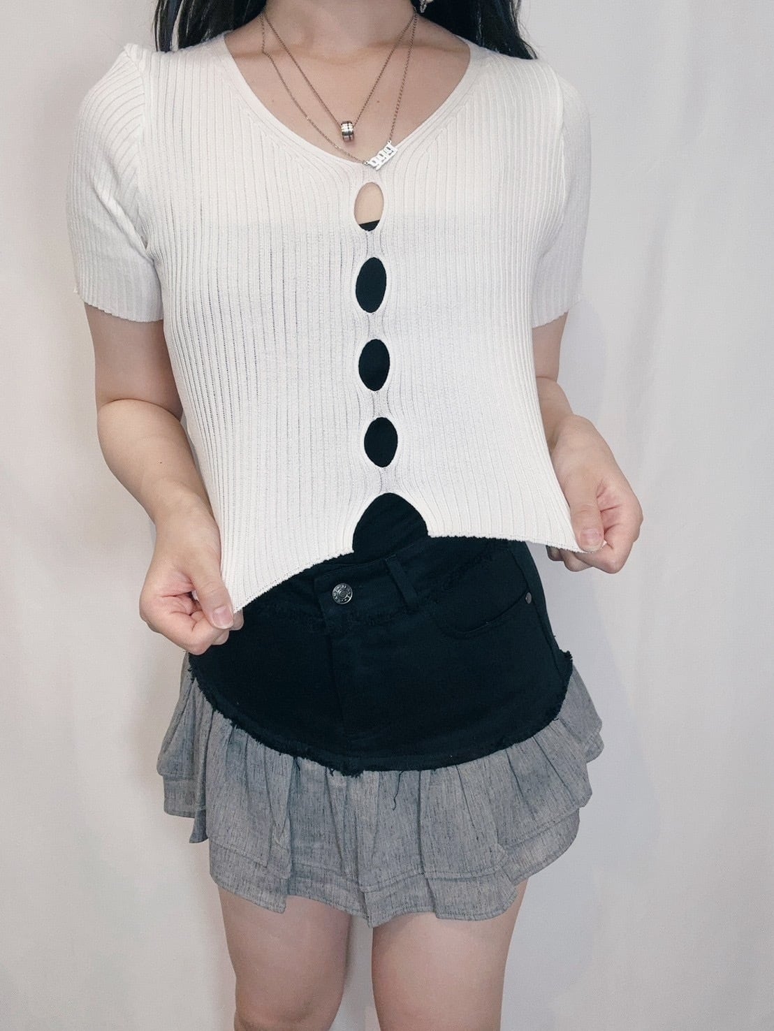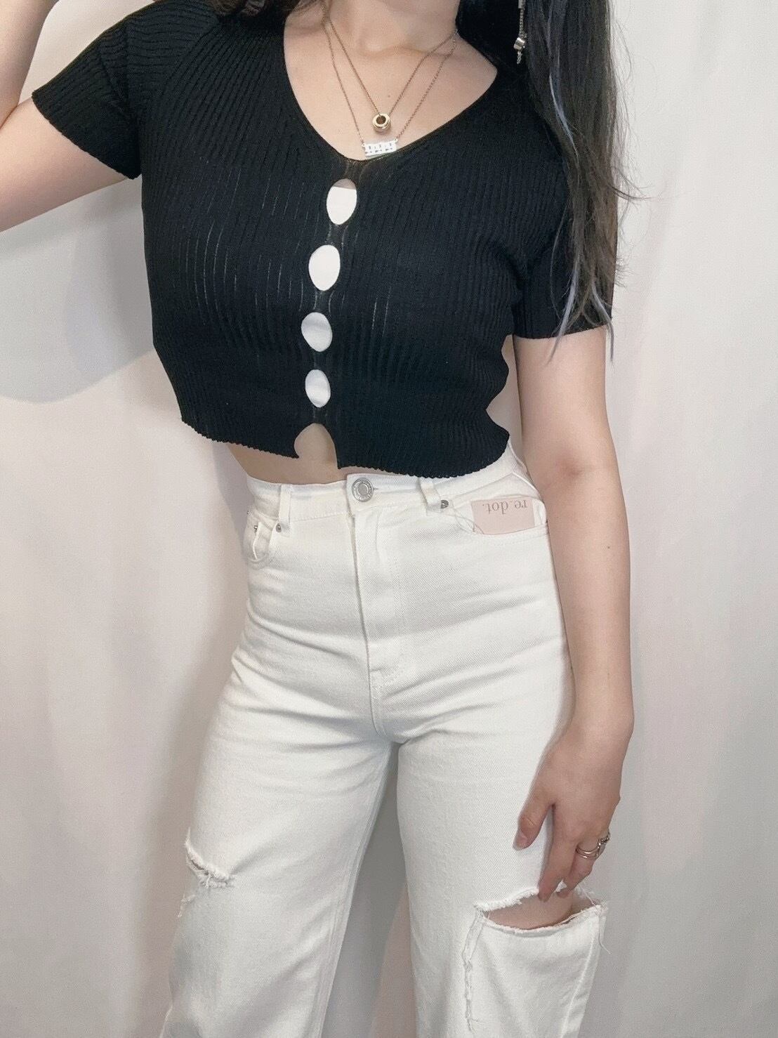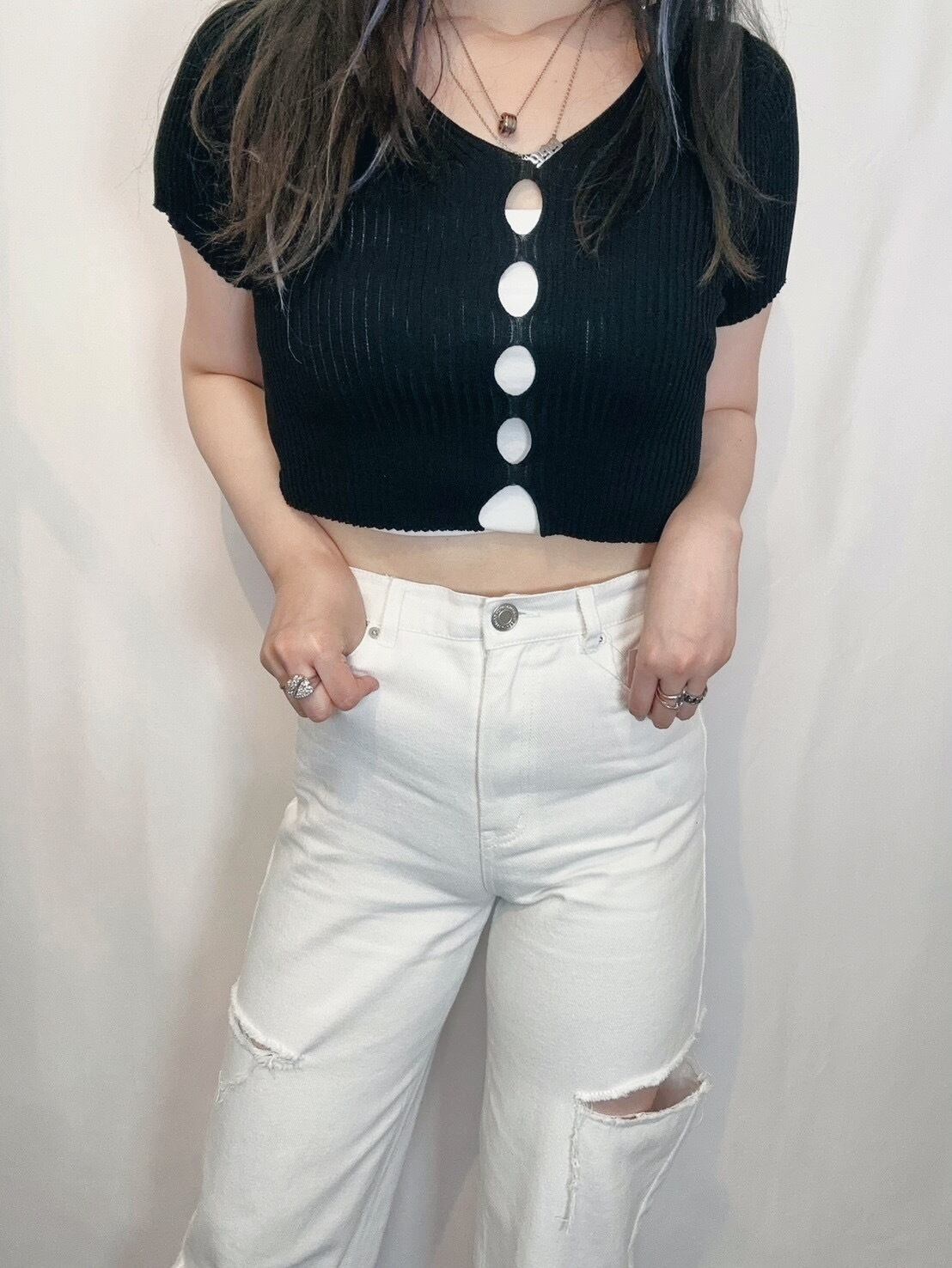 ホールが開いた大人っぽいトップスです。フェミニンスタイルにも,カジュアルスタイルにも合わせやすく、生地もしっかりしているので夏から秋先まで着れる商品です!