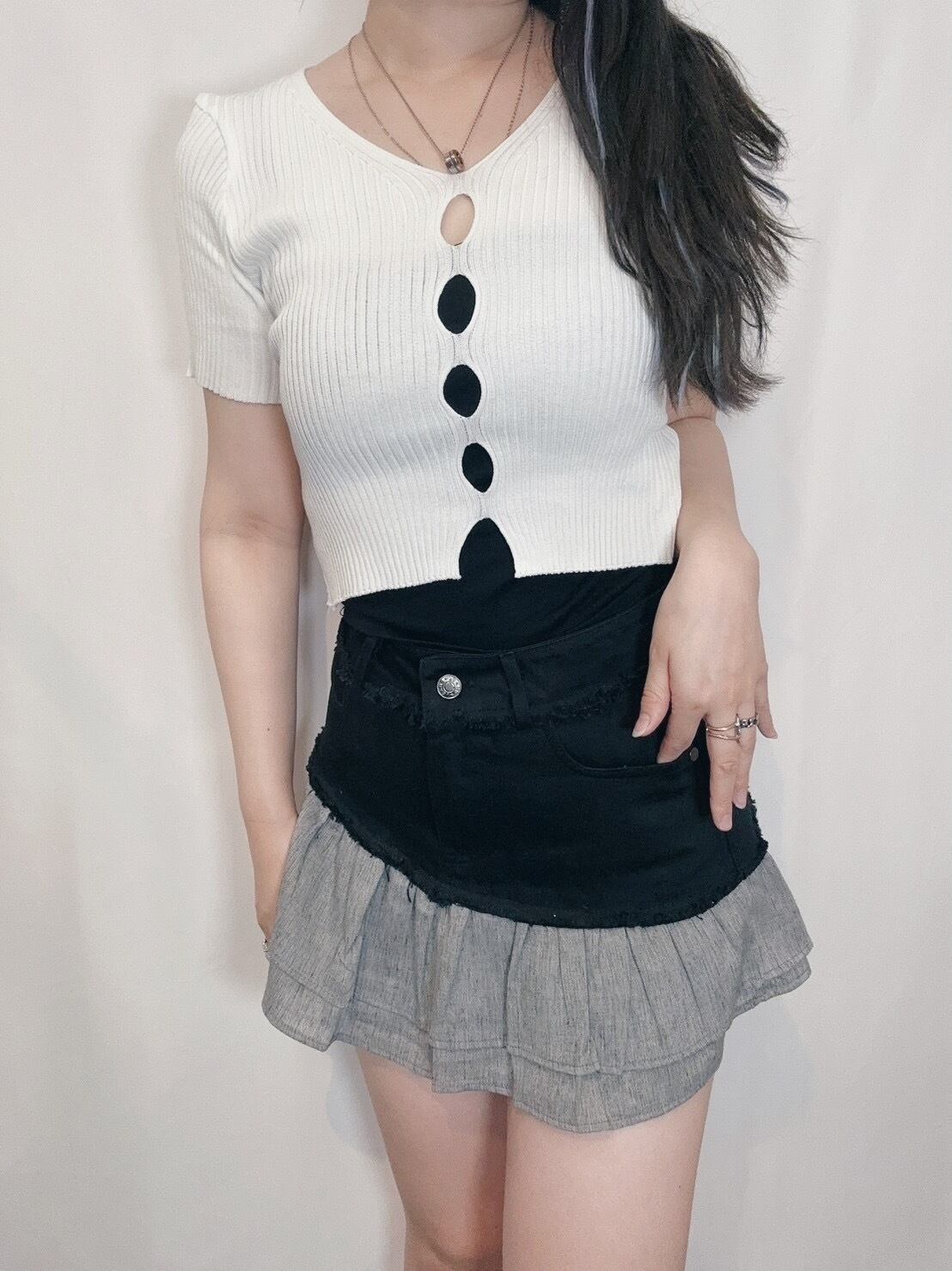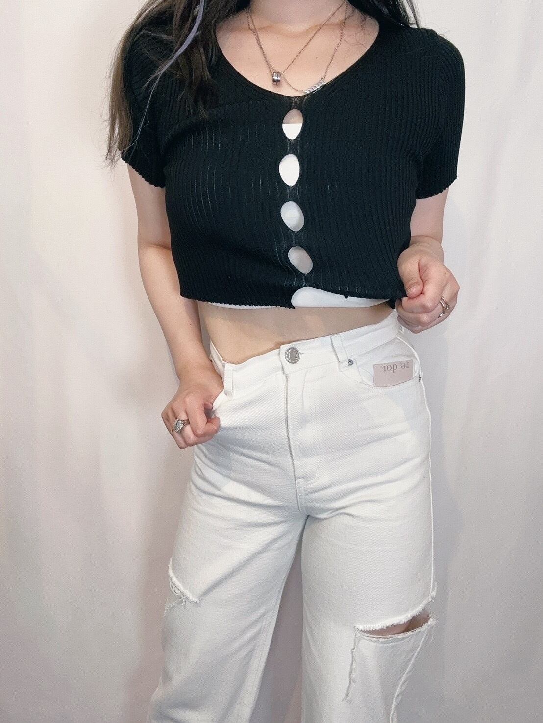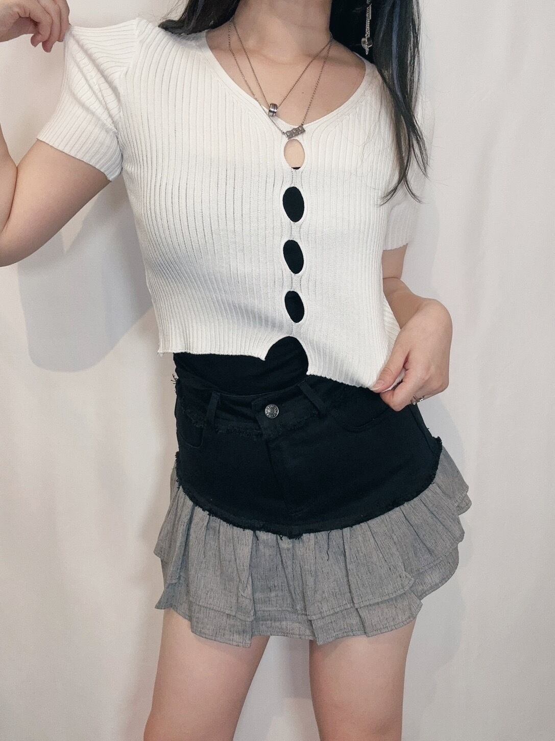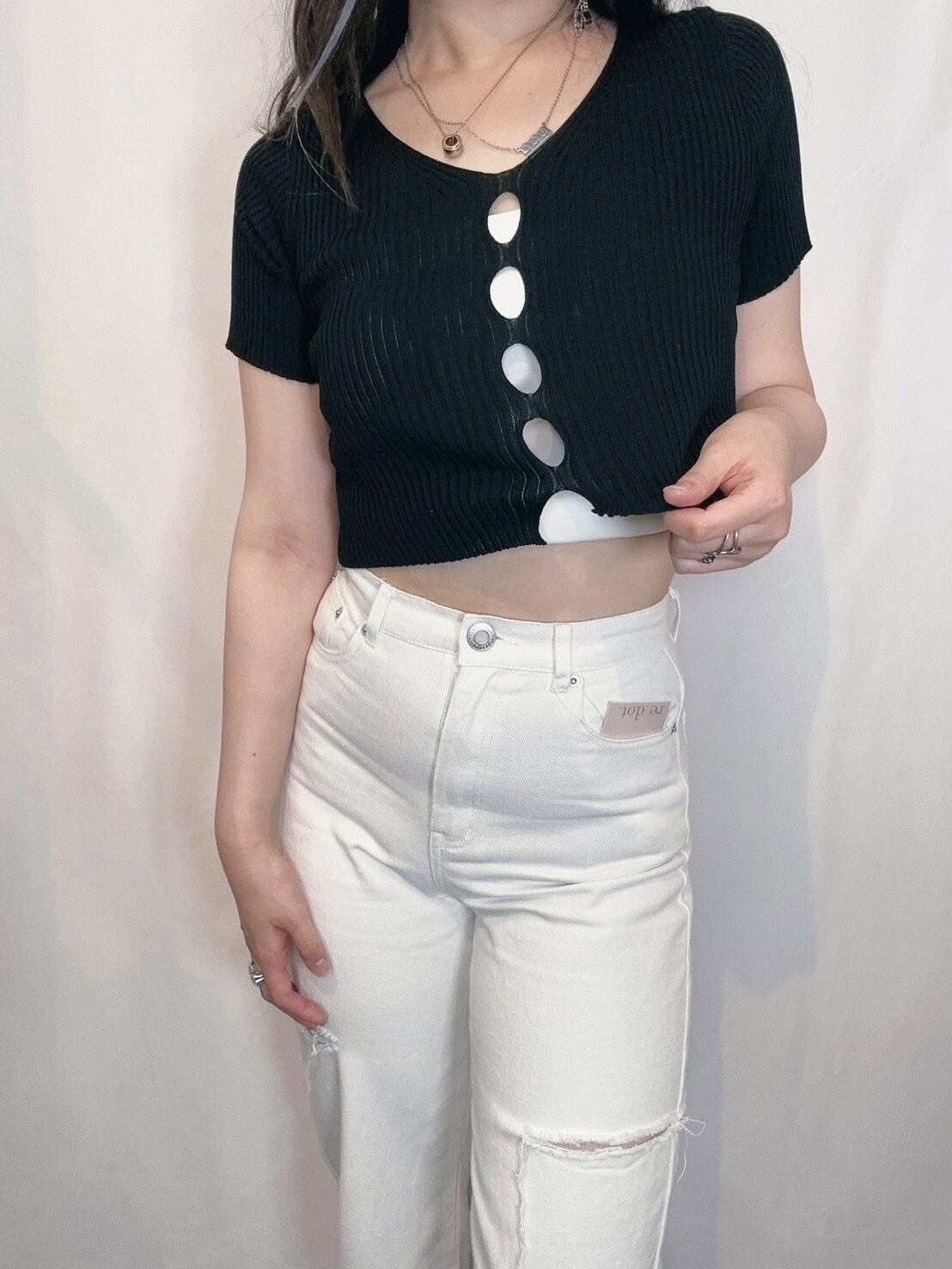ホールが開いた大人っぽいトップスです。フェミニンスタイルにも,カジュアルスタイルにも合わせやすく、生地もしっかりしているので夏から秋先まで着れる商品です!