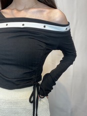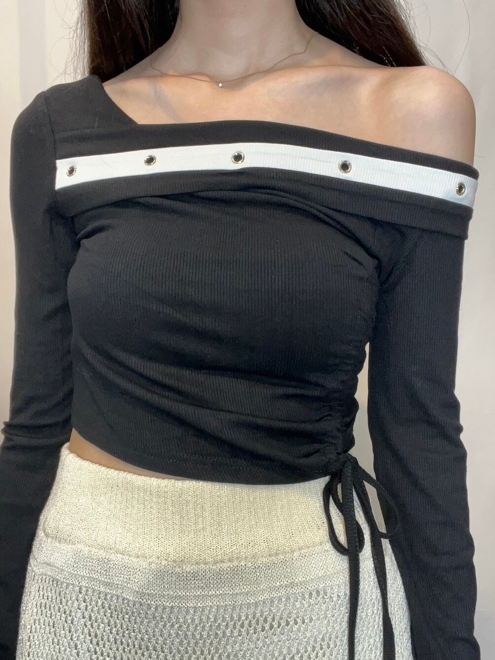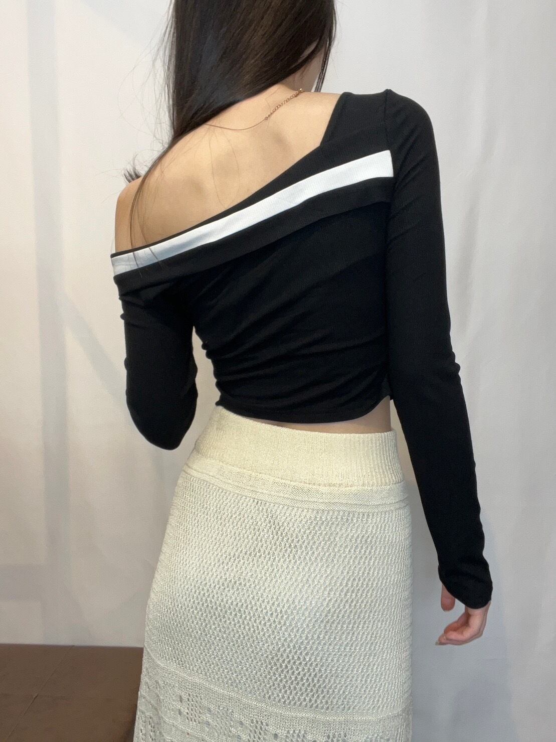 鎖骨、デコルテを綺麗に見せてくれるワンショルダートップスです!